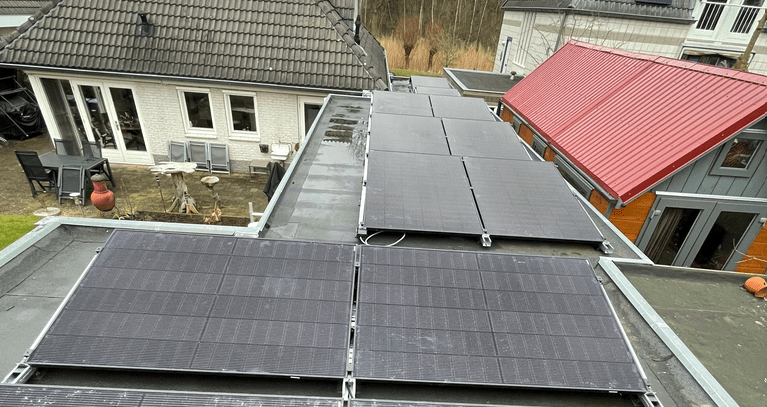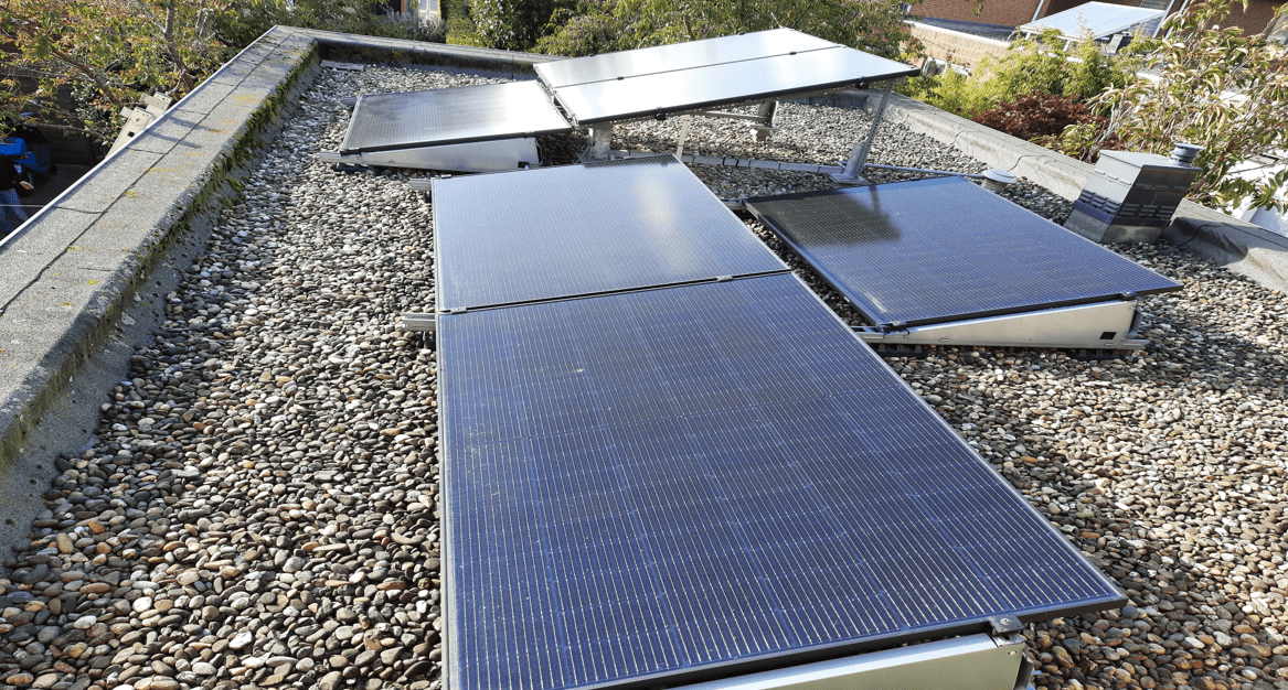 De meeste panelen die we aanbieden hebben een afmeting van 1.75 x 1.13. Houd rekening met 50cm ruimte tot de rand van uw dak en houd rekening met 50cm tussenruimte bij plaatsing van de panelen achter elkaar (in meerdere rijen). De Blubase Connect beugels kunnen gebruikt worden op platte daken en daken met een lichte hellingshoek (tot en met 6 graden).